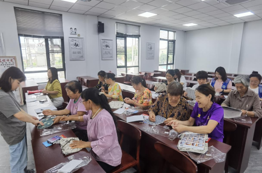 隨后,活動(dòng)進(jìn)入手工制作口金包的環(huán)節(jié)。參與者們積極動(dòng)手,學(xué)習(xí)制作口金包,并與殘疾人朋友一起互相傳授技巧。這個(gè)環(huán)節(jié)不僅鍛煉了大家的動(dòng)手能力,還促進(jìn)了交流和互動(dòng),增強(qiáng)了殘疾人與村民之間的聯(lián)系和友誼。