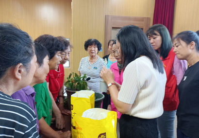 培訓(xùn)課堂上,專家老師先就繡球花的大小、形態(tài)、顏色等簡介特征進(jìn)行講解,讓大家通過圖片了解了花序中不同小花的區(qū)別,為大家展示了繡球花的不同品種,色彩不一樣的繡球花的寓意也是不一樣的,如白色的繡球花象征著希望和生機(jī),粉色的繡球花更是象征著令人向往的愛情。接著,現(xiàn)場進(jìn)行了有趣的知識小問答,互動交流花草養(yǎng)護(hù)小“偏方”讓大家獲益匪淺。然后,專家老師為志愿者團(tuán)隊(duì)發(fā)放了繡球花束,耐心地講解了繡球花的養(yǎng)護(hù)方法,包括土壤選擇、施肥方法、澆水方法、繁殖方法、修剪方法,并提醒志愿者在養(yǎng)護(hù)繡球花的時(shí)候注意光照和濕度的要求。最后,大家跟著專家老師的演示,現(xiàn)場學(xué)習(xí)繡球的扦插操作,活動氛圍十分熱烈,志愿團(tuán)隊(duì)收獲頗豐。