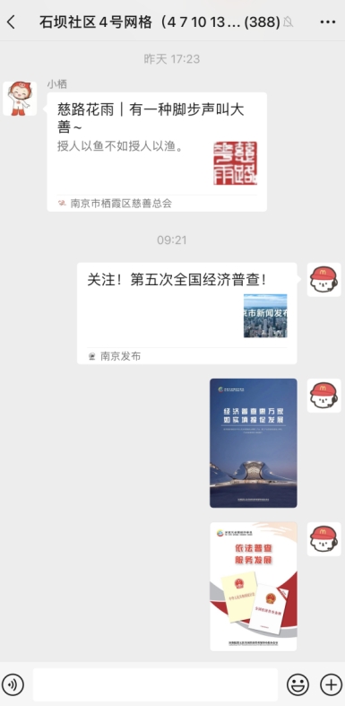 社區(qū)借助“掌上云社區(qū)”平臺,線上發(fā)布經普知識鏈接、及時推送“普查單位清查告知書”及工作進度,向大家講解經濟普查的目的、相關規(guī)定及重要意義,幫助轄區(qū)企業(yè)、商戶了解經濟普查的重要性,引導普查對象積極配合普查工作,提供企業(yè)信息。此外,社區(qū)組織普查員,在轄區(qū)內張貼宣傳海報,向企業(yè)及商戶發(fā)放宣傳頁,現(xiàn)場登記商戶信息,有序開展面向經濟普查單位的清查工作,營造了濃厚的普查氛圍。