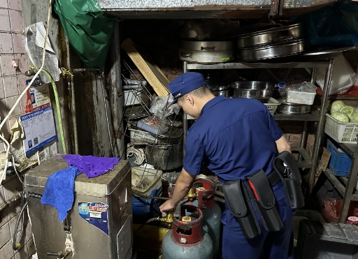 在馬群新街餐飲店中,工作人員對餐飲店后廚的燃?xì)馐褂们闆r進(jìn)行了記錄,與燃?xì)夤居涗涍M(jìn)行比對驗查,對燃?xì)鈭缶?、閥門、軟管等進(jìn)行了現(xiàn)場檢查。社區(qū)安全巡查員向商戶進(jìn)行了燃?xì)獍踩跋腊踩男麄?,了解商戶?dāng)前的保障措施,及相關(guān)困難。