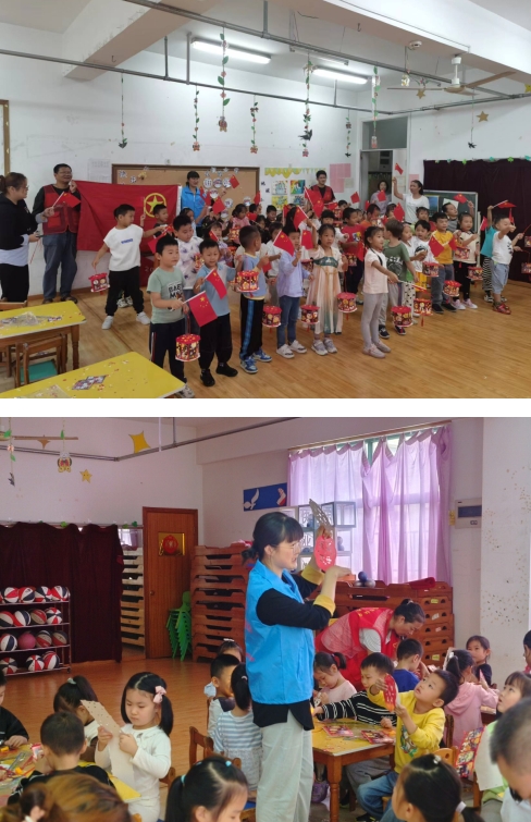 今年中秋過后緊接著就是國慶,雙節(jié)同慶,燈籠制作完成后,由幼兒園老師帶領大班的小朋友合唱了一曲國歌,為即將到來的祖國的生日送上祝福,合唱結(jié)束后,每個小朋友一手拿著燈籠,一手拿著國旗進行合照,為此次的雙節(jié)同慶畫上圓滿的句號。