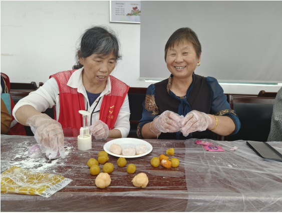 活動(dòng)開始,大家就已經(jīng)按捺不住,躍躍欲試。當(dāng)雪白的預(yù)拌粉在開水的作用下迅速成團(tuán),社區(qū)員工周晨就主動(dòng)挽起了衣袖,將胖乎乎的面團(tuán)使勁地揉,面團(tuán)變得彈力十足。接著大家井井有條地為分為三組,三組自發(fā)地組織起了分發(fā)月餅制作材料。百水家園社區(qū)工會(huì)女職工委員會(huì)主任田慧向大家講解冰皮月餅的制作方法。大家紛紛化身月餅師傅,打平、搓圓、壓模、裝盒,相互交流著制作技巧。在歡聲笑語中,精美的冰皮月餅逐漸成型,大家小心翼翼地將做好的月餅放進(jìn)精美的月餅盒中,紛紛與自己親手制作的月餅合影留念。社區(qū)保潔員徐阿姨感嘆道:“今天自己親手做月餅,真是別有一番滋味呀!希望工會(huì)多舉辦這樣的活動(dòng),實(shí)在是又有趣了。”最后,大家開心地一手拿著自己親手做地月餅,一手揮舞著小紅旗,共同為祖國母親獻(xiàn)上了歌曲《我和我的祖國》?;顒?dòng)現(xiàn)場所有人都心潮澎湃,激動(dòng)不已!