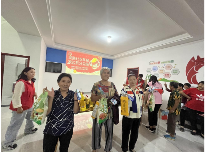 活動(dòng)最后,湖熟社區(qū)為居民志愿者們進(jìn)行了積分兌換。在兌換中,50多名志愿者根據(jù)自己的志愿者服務(wù)積分兌換到了洗衣液、洗潔精、大米、衛(wèi)生抽紙、手液、香皂等心儀的生活用品。此次兌換行動(dòng),用“小獎(jiǎng)品”撬動(dòng)“大動(dòng)力”,用“小積分”凝聚“大動(dòng)能”,潛移默化中激發(fā)了居民對(duì)于社區(qū)治理的參與動(dòng)力與主人翁意識(shí)。