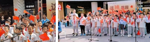 升旗儀式結束后,活動進入了尾聲,大家來到了花園城。小朋友和志愿者排好隊列,手舉紅旗,一起合唱了激動人心的歌曲——《歌唱祖國》。每個人都心潮澎湃,熱血沸騰,展現(xiàn)了當代學子朝氣蓬勃的精神面貌和滾燙的赤子心,活動結束。