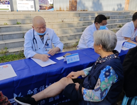 活動現(xiàn)場,來自省人民醫(yī)院的醫(yī)療志愿者認(rèn)真地為每位居民進(jìn)行血壓、血糖檢測等常規(guī)檢查,建立健康檔案并向他們發(fā)放秋季養(yǎng)生知識宣傳單頁,講解疾病預(yù)防知識,告知老年人在秋季飲食方面需要注意的問題,并提醒老年人在日常生活中要進(jìn)行適量的鍛煉和運動。此外,對于有既往病史的老年人,耐心詢問他們的身體狀況、日常飲食以及用藥情況,并給予健康飲食以及合理用藥方面的指導(dǎo)。
