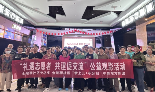 近日,金陵驛社區(qū)聯(lián)合黨建共建單位、掌云+積分制聯(lián)盟商戶中影東方影城開(kāi)展“禮遇志愿者 共建促交流 ”公益觀影活動(dòng)。