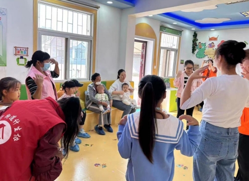 老師靈巧地運(yùn)用手指進(jìn)行游戲,引導(dǎo)孩子們一起模仿并參與其中,讓他們體驗(yàn)到手指運(yùn)動的快樂和智力的發(fā)展。