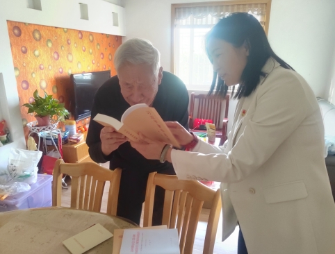 活動中,社區(qū)志愿者積極引導(dǎo)居民參與閱讀,發(fā)起全民閱讀倡議,推動社區(qū)上下形成“好讀書、會讀書、讀好書”的閱讀氛圍,參加活動的居民結(jié)合自己的工作崗位、成長經(jīng)歷和生活感悟等,暢談自己的讀書收獲,從書本上談?wù)摰綄嶋H中,從書籍里談?wù)摰缴罾?,大家分享著各自讀書的樂趣,在讀書中提高知識素養(yǎng),現(xiàn)場氛圍輕松愉悅。此外,社區(qū)書記薛忠琴為老黨員們送去了學(xué)習(xí)書籍,為他們朗讀原文,向他們講解開展活動的意義和主要內(nèi)容,勉勵老黨員要始終保持學(xué)習(xí)熱情,保持退休不褪色的初心本色。