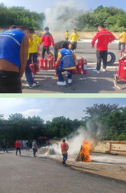 演練分為兩部分,首先開展消防安全知識培訓,培訓會上職工志愿者介紹了滅火器的種類和使用方法,干粉滅火器可以用來撲滅固體類的初期火災(zāi),也可撲滅可燃氣體液體或帶電設(shè)備的火災(zāi),以及可燃液體、氣體、固體及帶電設(shè)備的混合火災(zāi)。二是進行現(xiàn)場滅火演習,現(xiàn)場工會會員們進行了防火安全教育和消防法規(guī)宣傳,提高防火意識、掌握使用滅火器的正確方法,確保工作安全順利進行。