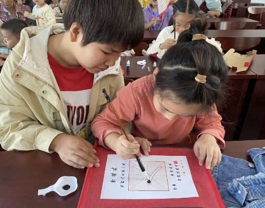 為了讓參與者更好地感受到書法的藝術魅力,活動最后還組織了一場書法作品創(chuàng)作環(huán)節(jié)。志愿者們引導著孩子們自主完成自己的書法作品,在一撇一捺中感受到了書法藝術的獨特魅力。這不僅增加了孩子們對書法的喜愛,也培養(yǎng)了他們對藝術的審美能力。