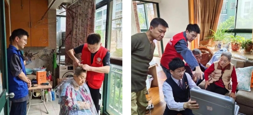 該戶家庭里有位百歲老人是前不久剛從老家接到這里來生活的,網(wǎng)格員同志對這戶家庭也是尤為關(guān)注經(jīng)常聯(lián)系看是否有需要社區(qū)幫助的地方。當?shù)弥先诵枰戆l(fā)的時候立馬聯(lián)系了轄區(qū)內(nèi)一家理發(fā)店老板馬師傅,馬師傅聽到上門為百歲老人理發(fā)也是義不容辭的答應(yīng)了。