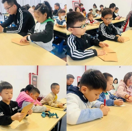 繪本故事結(jié)束后,社區(qū)志愿者繼續(xù)帶領(lǐng)小朋友們開始了自己的雞毛信制作。小朋友們細(xì)致地疊了信封,在信紙上作畫寫字,隨著雞毛,將思念傳遞給自己最想念的人。