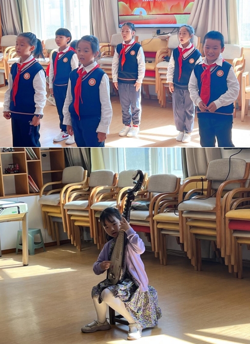 在表演過程中,還有許多小朋友們爭相上臺展示才藝。柔美的古箏曲琵琶曲、歡快的竹笛獨奏,還有及其應景的《一剪梅》。在大合唱《半生雪》之下,在大家不約而同的掌聲之下,一股歡樂和溫暖的氛圍彌漫在整個場所。每個老人都被表演的精彩所打動,紛紛露出了開心的笑容。