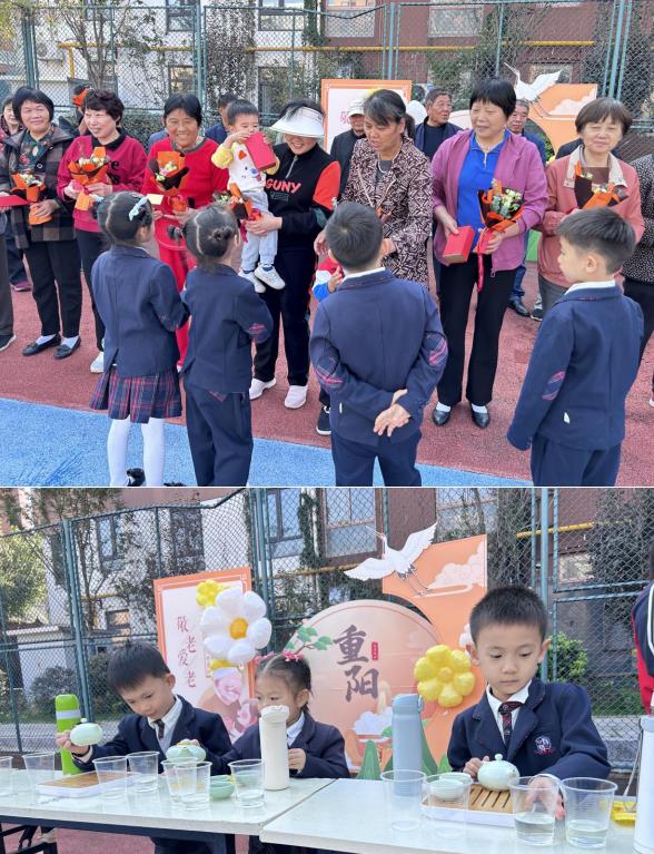 隨后,小朋友們準(zhǔn)備的另一個驚喜令現(xiàn)場的氣氛更加溫馨。他們親手采摘了鮮嫩的菊花,將其放入熱水中泡制成菊花茶。小朋友們親自為爺爺奶奶們倒上自己泡制的菊花茶,這份親手制作的茶品充滿了他們的關(guān)愛和感恩之心。爺爺奶奶們感受到了小朋友們真摯的情感,品嘗著茶水中散發(fā)出的芬芳和溫暖。
