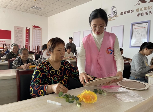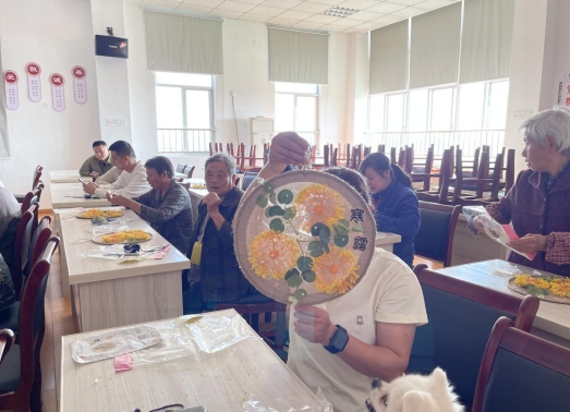在桌子上擺放著各種麻繩、彩色布料和裝飾品,為居民們提供豐富的選擇。大家絡(luò)繹不絕,互相交流著創(chuàng)意和設(shè)計(jì)靈感。居民們積極投入制作,用心地編織和裝飾掛飾。有些人巧妙地將彩色布料剪成小花朵,然后用麻繩編織成花環(huán),裝飾在門廊上;還有人選擇用麻繩編織小魚,寓意著家庭的和諧和富饒。每一件掛飾都是獨(dú)一無二的創(chuàng)作,展現(xiàn)了居的巧思和藝術(shù)才華。通過一個(gè)小小的掛飾來裝飾自己的家,從而達(dá)到以庭院“小美”成就鄉(xiāng)村“大美”的思想。