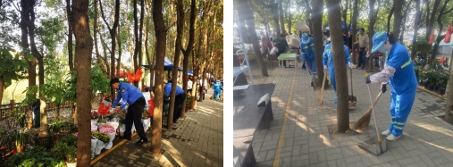 菊花展期間,城管隊(duì)員針對菊花展周邊非機(jī)動車亂停亂放、機(jī)動車違停等行為進(jìn)行及時清理疏導(dǎo),規(guī)范樂農(nóng)集市內(nèi)商戶經(jīng)營秩序;環(huán)衛(wèi)工人對菊花展周邊道路兩側(cè)綠化帶、草坪,樂農(nóng)集市內(nèi)攤位等區(qū)域衛(wèi)生死角進(jìn)行全面清理。
