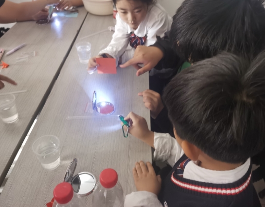 在光學(xué)實(shí)驗(yàn)過(guò)程中,志愿者們采取“一對(duì)一”教學(xué)方式,讓孩子們能夠更加深入地進(jìn)行物理科學(xué)實(shí)驗(yàn),加強(qiáng)對(duì)物理知識(shí)的掌握程度和引導(dǎo)探索的好奇心。孩子們都十分主動(dòng)動(dòng)手,跟隨著志愿者的講解,做著一個(gè)個(gè)實(shí)驗(yàn),領(lǐng)略著光的神奇。