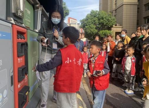 活動開始,邁皋橋街道城市治理委員會公眾委員圍繞垃圾分類亭房的功能布局、垃圾投放口和對應(yīng)類型垃圾類型、使用步驟等進行講解,手動操作并回答孩子們的疑問,現(xiàn)場帶領(lǐng)孩子們認識生活中垃圾分類的實際操作過程。