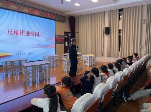 同時,針對近期全國各地頻繁發(fā)生的電信詐騙案件,花港派出所王警官對學(xué)生們開展了反電詐的相關(guān)知識,以學(xué)生為媒介,將反電詐意識“帶回家”。