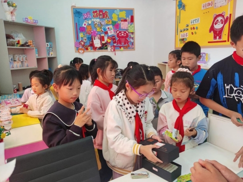 “你好,我想換一把尺子!”“我想要一枚童星勛章!”“我想為我們班級(jí)點(diǎn)一首歌。”剛吃完飯,孩子們就迫不及待地手持“五彩券”,在南灣營(yíng)小學(xué)“掌上云社區(qū)”驛站門口排起了長(zhǎng)長(zhǎng)的隊(duì)伍。兌換區(qū)的學(xué)生人頭攢動(dòng),每個(gè)孩子都在精心挑選自己心儀的物品,臉上都洋溢著快樂(lè)的笑容。同學(xué)們用自己努力贏得的五彩券換取自己心儀的獎(jiǎng)品,對(duì)他們自己來(lái)說(shuō)是極大的獎(jiǎng)勵(lì),對(duì)其他同學(xué)來(lái)說(shuō)也起到很大的鼓舞作用。