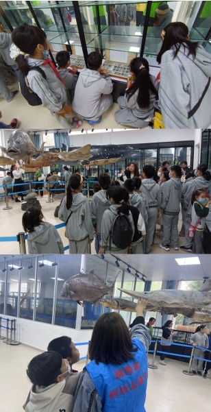 跟隨志愿者的腳步,探索者們第一站來(lái)到鯨鯊標(biāo)本館。神奇的海洋礦物、神秘的海洋生物等,一下子吸引了小朋友們的目光。觀察、感受、好奇……“這個(gè)是什么生物?”“這個(gè)生活在深海里嗎?”,各種各樣的問(wèn)題也應(yīng)運(yùn)而生。帶著好奇心,志愿者對(duì)一些生物進(jìn)行了講解,在妙趣橫生的講解中,小朋友們對(duì)部分海洋生物的習(xí)性、生活環(huán)境等有了基本了解。