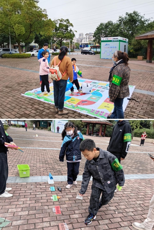 活動(dòng)現(xiàn)場(chǎng),孩子們絡(luò)繹前來(lái)參加活動(dòng),簽到打卡,領(lǐng)取“環(huán)保小衛(wèi)士”袖章。現(xiàn)場(chǎng)還設(shè)置了垃圾分類闖關(guān)游戲,第一關(guān)垃圾分類丟沙包、第二關(guān)垃圾運(yùn)送站、第三關(guān)我來(lái)比劃你來(lái)猜、第四關(guān)垃圾分類大富翁,層層闖關(guān),孩子們通過(guò)闖關(guān)勝利后獲得環(huán)保氧氣幣,再用積累的氧氣幣兌換氧氣植物。整個(gè)活動(dòng)以豐富的游戲闖關(guān)形式,調(diào)動(dòng)了孩子們的樂(lè)趣,提高孩子們對(duì)垃圾分類的重要性認(rèn)知。