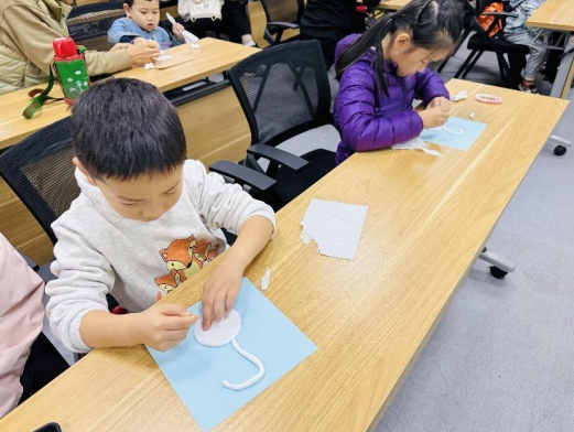 精彩的故事講完,老師帶領(lǐng)小朋友進(jìn)行詠鵝粘土畫的制作。通過捏、揉、搓,制作出纖長的脖子,用撕開的紙巾做柔軟的羽毛。在老師的指導(dǎo)下,孩子們發(fā)揮創(chuàng)造力和想象力,制作出不同的背景,柳樹下、水池里到處都是白鵝的身影。