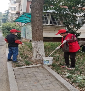 活動(dòng)中,社區(qū)志愿者們按要求給每棵樹(shù)標(biāo)定1.2米的基準(zhǔn)線,頂端纏繞紅色膠帶,然后利用生石灰、防蟲(chóng)藥劑等混合配比液進(jìn)行刷白。刷白后不僅能夠防蟲(chóng)防凍,還起到美化效果。在保護(hù)好樹(shù)木的同時(shí),志愿者還將林帶內(nèi)的垃圾、雜物、雜草進(jìn)行清理。大家通過(guò)分工合作,耐心仔細(xì)地為大樹(shù)披上了一件又一件健康、溫暖的白色“冬衣”,為社區(qū)增添了一道亮麗的風(fēng)景線。