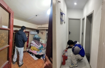 現(xiàn)場,工作人員、派出所民警及消防人員等,重點就“三合一”場所的安全出口數(shù)量、疏散門的開啟方向是否符合要求,疏散通道、安全出口是否被堵塞,滅火器的配置、電器線路鋪設是否符合要求、有無線路老化現(xiàn)象,場所內(nèi)有無違規(guī)住人等情況進行檢查。