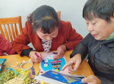 活動中,志愿者將準(zhǔn)備好的瓜子殼、花生殼、材料工具等放到居民面前,讓大家共同制作瓜子殼粘貼畫。每位居民都積極參與,精心構(gòu)思,將果殼依次進(jìn)行擺放、粘貼、添畫、涂色,大膽創(chuàng)作,制作出一幅幅造型精美、生動形象的手工藝術(shù)作品。