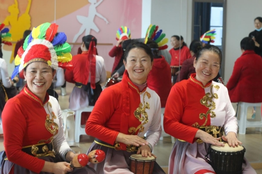 剛開始,很多居民擔(dān)心自己沒有音樂細(xì)胞,融入不了鼓圈,但是很快驚喜出現(xiàn)了:30多人的鼓圈,在劉老師手勢和聲音的帶領(lǐng)下,很快敲打出美妙的節(jié)奏,時而如湍急的河流,沖過高山;時而如涓涓的小溪,跳過山崗;節(jié)奏在鼓圈中自由流動,帶領(lǐng)老師跟著參與者的感覺走,或跟或領(lǐng),邊跟邊領(lǐng),放下評價,沒有對錯之分,一起在鼓音鏗鏘中感受傳承發(fā)展,品味開放交融。