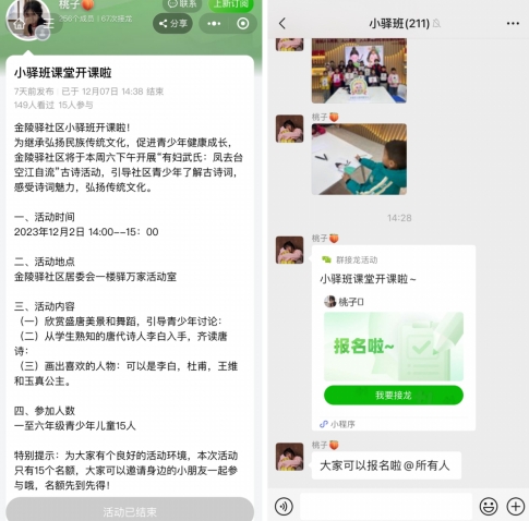 活動(dòng)前期,金陵驛社區(qū)通過(guò)掌云網(wǎng)格群發(fā)布活動(dòng)信息,組織居民群眾在掌上云平臺(tái)線上報(bào)名,明確活動(dòng)要求,簡(jiǎn)化報(bào)名流程,共招募了15組家庭參加。