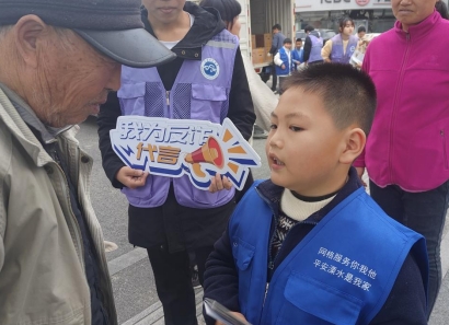 12月9日下午,“防詐少年團”在社工、大學生志愿者等帶領(lǐng)下,走上街頭,向過往市民、商家宣傳防詐騙知識。這是溧水區(qū)永陽街道錦繡社區(qū)開設(shè)的“課外拾光”周末公益課堂的一個縮影。