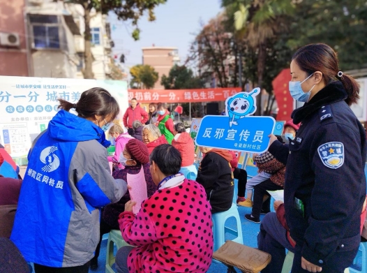 反邪教宣傳是社區(qū)網(wǎng)格員和民警的重要工作之一,也是保障社會(huì)安全、維護(hù)公共秩序的必要措施。南京市棲霞區(qū)燕子磯街道電瓷新村社區(qū)結(jié)合廣場(chǎng)活動(dòng)在小區(qū)給居民宣傳反邪知識(shí),讓更多人了解邪教的危害性和防范方法。