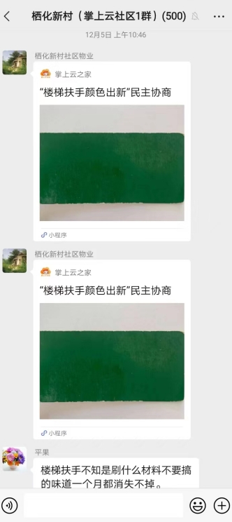 在民主協(xié)商過程中,居民們積極參與,紛紛在“掌上云社區(qū)”中留言表達(dá)自己的看法。大家一致認(rèn)為,新的扶手顏色應(yīng)該既能提升樓道的美觀度,又能保持實(shí)用性;同時(shí),為了方便居民們?nèi)粘3鲂?,扶手顏色?yīng)該與周圍環(huán)境相協(xié)調(diào),避免對居民造成視覺上的干擾。