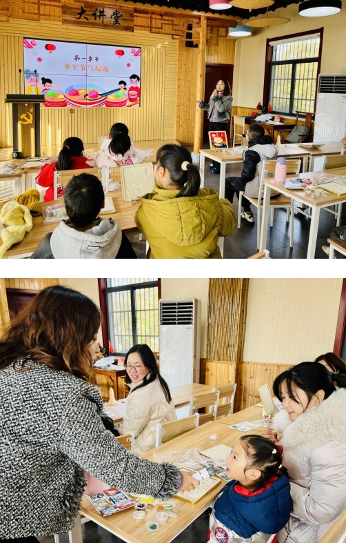 老師首先為社區(qū)的大小朋友們介紹了冬至節(jié)氣的起源、氣候特點(diǎn)、風(fēng)俗習(xí)慣等知識(shí)。冬至,又稱日南至、冬節(jié)、亞歲等,兼具自然與人文兩大內(nèi)涵,既是二十四節(jié)氣中一個(gè)重要的節(jié)氣,也是中國民間的傳統(tǒng)祭祖節(jié)日。冬至是四時(shí)八節(jié)之一,被視為冬季的大節(jié)日,在古代民間有“冬至大如年”的講法。孩子們在聽講的過程中學(xué)到了很多之前不了解的知識(shí),根據(jù)現(xiàn)在的氣候特點(diǎn)真切的感受到冬至節(jié)氣的氣候特點(diǎn)。