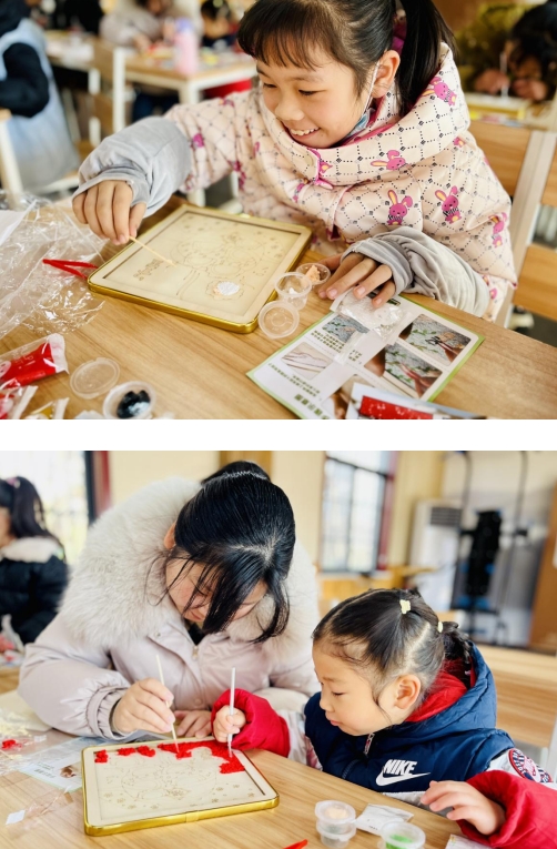 本次活動(dòng)我們帶領(lǐng)孩子們一起制作冬至主題的紙漿畫,紙漿畫主要以紙漿為主要材料創(chuàng)作,可以在木、瓷、玻璃、石、紙等多種材料上繪制,風(fēng)干后即可成品。老師向孩子們介紹了紙漿畫的歷史和制作方法。聽完講解,孩子們迫不及待地開始了紙漿畫的制作,制作漿泥、繪圖、并用不同顏色的紙漿精心裝飾,將節(jié)氣元素融入手工作品中,現(xiàn)場氣氛非?;钴S。