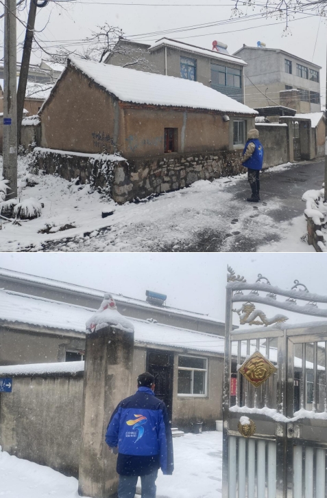 在這場(chǎng)雪中,青龍社區(qū)的網(wǎng)格員們對(duì)家有危房的居民進(jìn)行了上門查看。他們冒著嚴(yán)寒,踏著積雪,逐戶走訪,仔細(xì)查看房屋的結(jié)構(gòu)和安全狀況。對(duì)于存在安全隱患的房屋,他們及時(shí)提醒居民采取措施,防止意外發(fā)生。