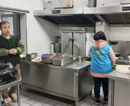 同時,食品安全也是此次檢查的重點之一。社區(qū)工作人員抽查了餐飲單位的消毒記錄和進貨單,確保其符合相關規(guī)定。他們還督促餐飲單位落實“兩個主體責任”,即食品經(jīng)營者和監(jiān)管部門的責任,確保食品安全工作得到有效執(zhí)行。并將反對浪費,崇尚節(jié)約的理念進行宣傳。