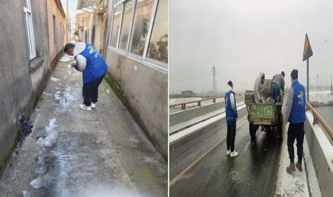 近日,隨著氣溫持續(xù)下降,受低溫天氣影響,湖熟街道晶明村部分路段存在積雪、結(jié)冰及霜凍現(xiàn)象,給村民出行帶來諸多不便。為了預(yù)防和減少滑到、摔傷事故發(fā)生,確保村民出行安全,南京市江寧區(qū)湖熟街道晶明村001號(hào)網(wǎng)格員魏晨旭聯(lián)合志愿者們開展撒鹽除冰志愿服務(wù)活動(dòng)。