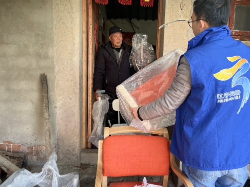 為幫助特困人員提高生活質(zhì)量,切實(shí)為居民辦好事、做實(shí)事。近日,南京市江寧區(qū)湖熟街道綠楊村的網(wǎng)格員們?yōu)樘乩Ю先送踬t春上門發(fā)放助老用具,讓老人在寒冷的冬天感受到了社區(qū)的溫暖和關(guān)懷。