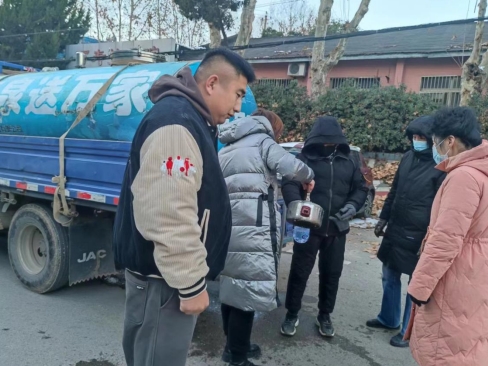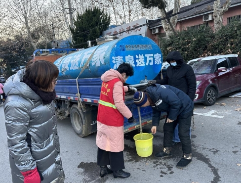 12月22日,棲霞區(qū)燕子磯街道化纖新村接到12345居民求助熱線,訴求人王女士向社區(qū)反映社區(qū)為老舊小區(qū),天氣寒冷自來水管上凍,居民沒有水吃。為了解決這一問題,化纖新村社區(qū)張書記聯(lián)系送水車的同時(shí),安排社區(qū)民兵們和工作人員為居民送水。