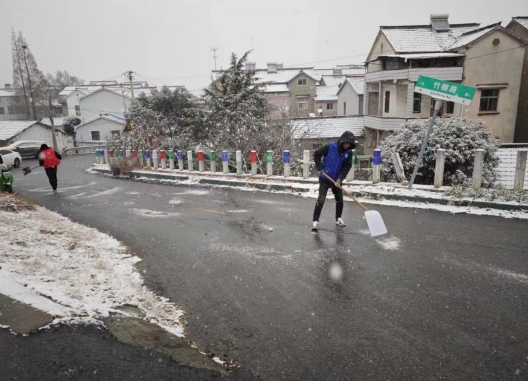 南京迎來(lái)2023的第一場(chǎng)雪,受寒潮影響,出現(xiàn)低溫雨雪冰凍天氣。為了確保村民的出行安全,南京市江寧區(qū)湖熟街道和平村001網(wǎng)格積極采取措施,在路上撒鹽,以防止結(jié)冰,保障道路暢通。