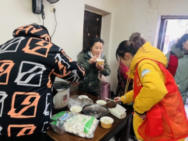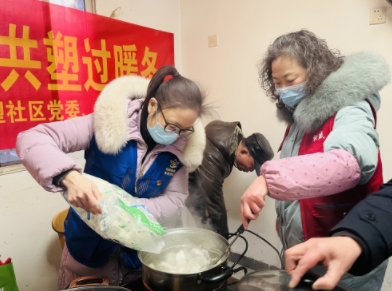 冬至節(jié)氣已至,近日,南塑社區(qū)聯(lián)合共建單位邁皋橋初級中學,開展了“文明有‘寧’暖民心 ”煮餃子送溫暖活動。活動當天上午,社區(qū)工作人員、邁皋橋初級中學師生來到南塑新村小區(qū),大家戴上手套、系上圍裙,在長桌前各司其職、分工合作,打水、燒水、下餃子、盛餃子……現(xiàn)場井然有序。社區(qū)工作人員將一盤盤熱氣騰騰的餃子送到小區(qū)老年居民面前,大家邊吃邊聊,滿是歡聲笑語,其樂融融。張奶奶笑呵呵地說:“社區(qū)黨委真貼心,每個傳統(tǒng)節(jié)日都會組織暖心的活動,給你們點贊。”隨后,社區(qū)工作人員與師生一起打包好餃子,送進轄區(qū)內(nèi)行動不便的老人家中,學生們?yōu)榫用翊繁?、唱歌、表演?jié)目,叮囑老人注意保暖和出行安全,讓他們在這寒冷冬日感受社區(qū)大家庭的溫暖。