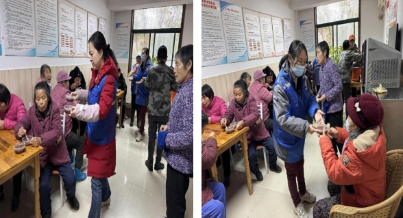 芝嘉花園社區(qū)職工志愿者們早早就買好了糯米、紅豆、花生、紅棗、蓮子等熬煮臘八粥的材料。1月18日上午,不到8點志愿者們就忙活開了,將煮粥的材料細心挑選洗凈,特別是紅棗由于怕老人們咀嚼不便,來幫忙的居民志愿者阿姨們將每顆紅棗的棗核都一一剔除,大家的臉上洋溢著笑容,忙得不亦樂乎。在芝嘉花園社區(qū)老年活動室,一大鍋軟爛熱氣騰騰的臘八粥已經(jīng)熬好了,散發(fā)著陣陣香味。圍著桌子,老人們吃著、聊著,發(fā)出陣陣笑聲,吃完一碗職工志愿者就會及時再打一碗粥送上,社區(qū)工作人員還細心的將電視打開,吃完臘八粥的老人還可以在社區(qū)繼續(xù)看電視,享受到社區(qū)大家庭的溫暖。同時社區(qū)職工志愿者們還將臘八粥送到年紀大不方便行動的孤寡殘疾老人手中,獲得了這些老人的交口稱贊。