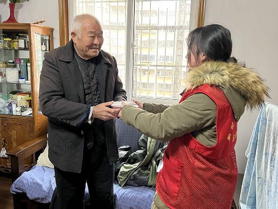 1月18日,南京市棲霞區(qū)馬群街道潤(rùn)康苑社區(qū)開(kāi)展“濃情臘八 關(guān)愛(ài)老兵”活動(dòng),為退役老兵派送臘八粥,送去冬日關(guān)懷和溫暖。