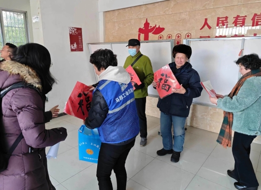 當社區(qū)工作人員和志愿者一副副把春聯(lián)、窗花等送到老人們手中,老人們無一不露出孩童般開心的歡笑。發(fā)放過程中社區(qū)工作人員與他們親切交談,詳細地了解了他們的身體狀況、生活情況及家庭狀況,向他們表達了新春的祝愿,禮雖輕、情卻重,小小的“禮物”承載著社區(qū)大家庭對老人們的誠摯溫暖的關懷和祝福。