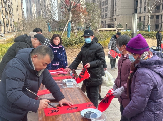 活動(dòng)現(xiàn)場(chǎng)熱鬧非凡,書法家們揮毫潑墨,一幅幅精美的春聯(lián)和福字躍然紙上。居民們紛紛圍在桌前,欣賞著書法家的作品,小區(qū)的小朋友們還主動(dòng)請(qǐng)求為自己寫上一幅心儀的春聯(lián)。社區(qū)工作人員也忙著將寫好的福字送到居民家中,同時(shí)也給社區(qū)的殘疾人等特殊群體送上春聯(lián),讓他們?cè)谛麓杭压?jié)感受到社區(qū)的溫暖和關(guān)懷。