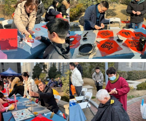 此外,為了讓大家感受到濃厚的節(jié)日氛圍和家的溫暖,在這里可以嘗試寫春聯(lián)送福字、體驗新年窗花剪紙、手工燈籠制作等活動,還可以在網(wǎng)紅小龍人打卡點留下你的美好瞬間。同時,為了滿足大家的口腹之欲,上坊社區(qū)還提供了龍年手工包、3D立體拼圖、甜品爆米花、非遺糖畫、套圈等美食。還有暖心理發(fā)服務(wù),讓你在新的一年從頭開始,煥發(fā)新的活力。在這里,每個人都能找到自己喜歡的活動,盡情享受這場“家門口”的文化盛宴,讓大家感受到社區(qū)的溫暖和文化的魅力,共同迎接一個美好的新年。