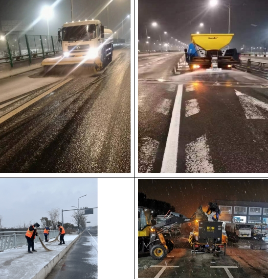 雨雪飄飄、寒風瑟瑟,風雪中濱江開發(fā)區(qū)工作人員不畏嚴寒,不斷對轄區(qū)內(nèi)高架橋梁、江寧西站出入口、公交站臺、坡道、菜場周邊等車流人流較大區(qū)域播撒融雪劑;并按照“機械掃雪為主、人工掃雪為輔”原則,進行除雪作業(yè),做到人力物力科學配置。伴著作業(yè)車輛雪中轟鳴,除雪工作得到了高質(zhì)高效推進,潔白的路面很快露出了本來顏色,路面上的車輛行駛狀態(tài)趨于正常。